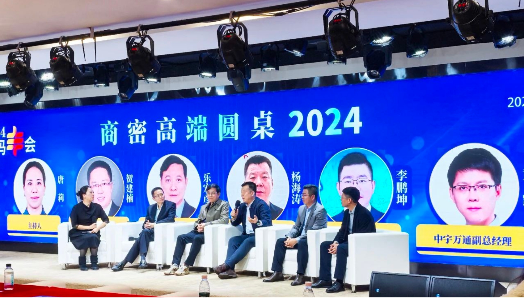 商密高端圆桌对话环节,EMC易倍(中国)信息北京公司总裁杨海涛与行业大咖就商用密码如何更好地在第三次科技革命的大背景下,同人工智能、云计算等新兴科技领域进行融合创新等话题进行深入探讨。